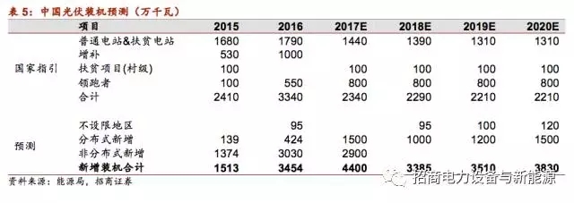國內(nèi)文件上調(diào)裝機(jī)指引,需求有望超預(yù)期。根據(jù)國家能源局《關(guān)于可再生能源發(fā)展“十三五”規(guī)劃實(shí)施的指導(dǎo)意見》,給定各省份(除北京、天津、上海、福建、重慶、西藏、海南)未來4年的光伏電站新增建設(shè)指引裝機(jī)量共86.5GW,到2020年累計(jì)光伏裝機(jī)目標(biāo)比此前上調(diào)56%。同時(shí)《指導(dǎo)意見》規(guī)劃指引并不包含分布式,對(duì)分布式項(xiàng)目建設(shè)不設(shè)限。2017年到7月底分布式新增裝機(jī)量高達(dá)13GW,遠(yuǎn)超行業(yè)預(yù)期,預(yù)計(jì)2017全年分布式將突破15GW,2018-2020年分布式有望保持10-12GW的裝機(jī)量,行業(yè)將持續(xù)發(fā)展。