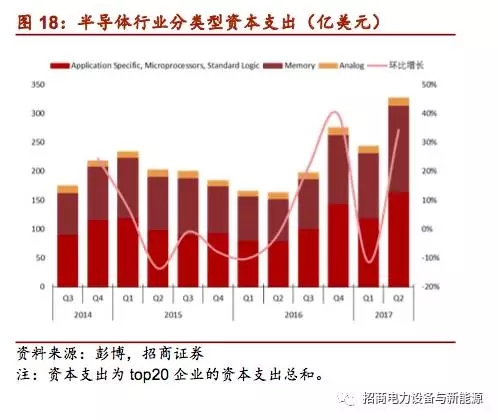 半導(dǎo)體企業(yè)的資本支出增加,等靜壓石墨的需求將增加:在價(jià)格進(jìn)一步上漲的刺激下,臺(tái)積電等主要半導(dǎo)體企業(yè)增加資本支出,欲進(jìn)一步擴(kuò)大產(chǎn)能,到2017年二季度,半導(dǎo)體資本支出同比增長超過100%,環(huán)比增長達(dá)到34%。