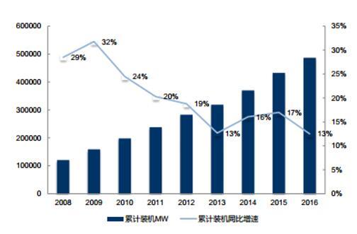 國內(nèi)風(fēng)電累計(jì)裝機(jī)容量