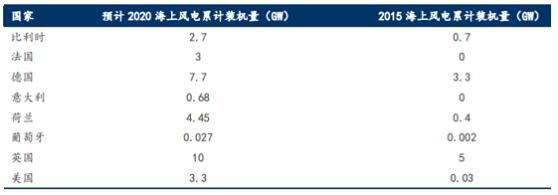 部分國家的海上風(fēng)電 2020 年預(yù)計(jì)裝機(jī)量