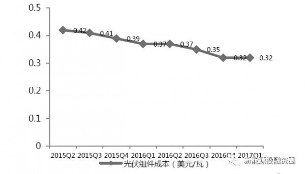 光伏發(fā)電成本持續(xù)下降,全世界范圍內進行價格競爭。目前我國光伏組件成本降至0.32 美元/瓦,兩年降幅23.8%;光伏系統(tǒng)價格已降至低于8 元/瓦的水平。智利光伏招標最低2.91 美分/千瓦時,德國光伏招標平均7.41 歐分/千瓦時。