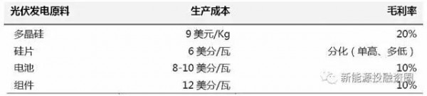光伏組件成本的降低需要各個環(huán)節(jié)共同努力,光伏裝機系統(tǒng)成本的下降帶動回報率的提升。組件價格下降帶動光伏度電成本降低。成本的降低需要產業(yè)鏈各個環(huán)節(jié)共同努力,如硅片由多晶向單晶轉變;使用電子級多晶硅料;發(fā)展高效電池片,減少銀漿;光伏系統(tǒng)跟蹤器的應用,打造智能組件等等,主要任務仍在光伏組件這一環(huán)節(jié)。高效產品的應用有望推動光伏系統(tǒng)成本持續(xù)降低,技術進步是實現(xiàn)平價上網(wǎng),提高產業(yè)競爭力,公司盈利能力的必由之路。光伏發(fā)電原料生產成本及毛利率情況見下表。