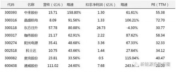 市場對產品需求也呈現(xiàn)分化趨勢,單晶硅片、高效電池片、高效組件等市場需求顯著提升,相關企業(yè)盈利能力增強。2017 上半年,市場上仍有接近20%的企業(yè)處于虧損狀態(tài),虧損的主要原因包括產品結構低端化,產能利用率不足,財務負擔較重等。而高效電池組件供應商盈利能力速增,上半年業(yè)績呈現(xiàn)大幅增長,如隆基股份,中來股份等。2017 上半年重點光伏公司業(yè)績情況見下表。