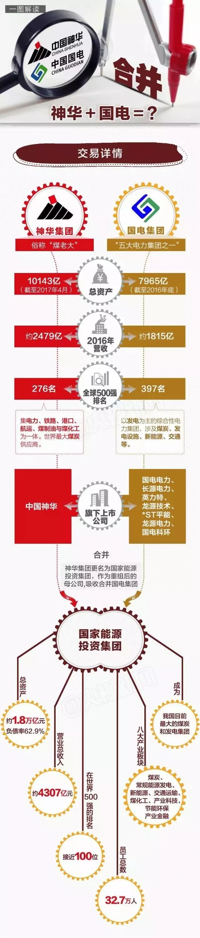 中國儲能網(wǎng)訊:國電與神華實施合并重組,定名為國家能源投資集團有限責(zé)任公司,在能源央企中,僅次于中石油、國家電網(wǎng)和中石化,位列中國第四大能源央企。