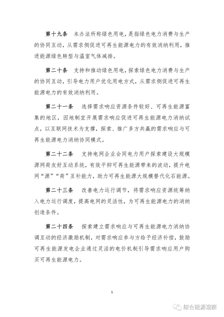 (三)促進可再生能源消納。各有關部門和企業(yè)要加強消費與生產的協(xié)同互動,從需求側促進可再生能源電力的有效消納利用,推進能源綠色轉型與溫室氣體減排。