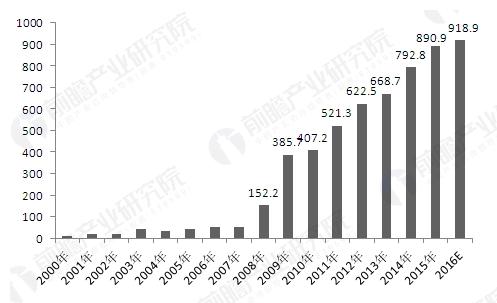2008-2016年全球電化學(xué)儲(chǔ)能項(xiàng)目累計(jì)裝機(jī)規(guī)模(單位:MW)