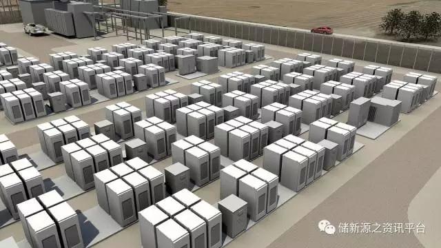 圖3 Powerpack及逆變器組成的大規(guī)模電池儲(chǔ)能系統(tǒng)(來源: Tesla)