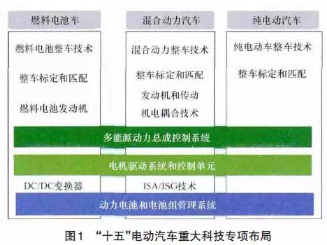 電動汽車重大專項以汽車整車技術(shù)和關(guān)鍵零部件技術(shù)為開發(fā)重點,采取整車牽頭、零部件配合、產(chǎn)學研相結(jié)合的模式,根據(jù)整車產(chǎn)品特征屬性和關(guān)鍵核心系統(tǒng)共享屬性,建立了電動汽車“三縱三橫”的矩陣式研發(fā)布局。