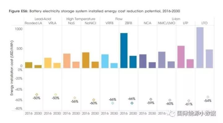 中國儲(chǔ)能網(wǎng)訊:根據(jù)國際可再生能源署(IRENA)日前發(fā)布“電力儲(chǔ)存與可再生能源——2030年的成本與市場”報(bào)告,到2017年中全球儲(chǔ)能裝機(jī)容量為176吉瓦,其中169吉瓦抽水蓄能(占96%);3.3吉瓦熱能儲(chǔ)存(1.9%);1.9吉瓦電池儲(chǔ)能(1.1%);1.6吉瓦機(jī)械儲(chǔ)能(0.9%)。