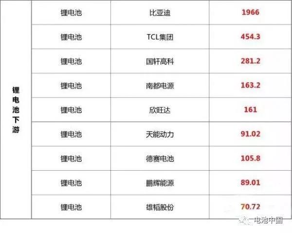 如圖所示,總市值超過500億的鋰電企業(yè)有4家,其中有3家均為鋰電池上游企業(yè),為天齊鋰業(yè)、贛鋒鋰業(yè)、鹽湖股份,1家為下游企業(yè)比亞迪,市值達(dá)1966億,有兩家鋰電企業(yè)市值有望沖破500億,分別為中信國(guó)安和TCL集團(tuán)。市值超過100億的企業(yè)有22家,占鋰電企業(yè)的76%,其余企業(yè)有望突破百億。