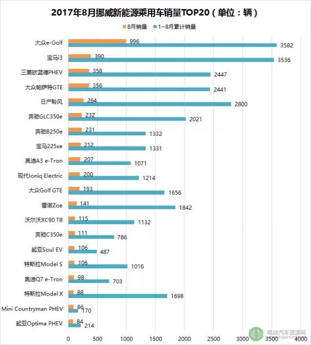 2017年8月,挪威新能源乘用車銷售了五千余臺(tái), 1-8月新能源乘用車?yán)塾?jì)銷量3.6萬臺(tái)。從挪威汽車市場(chǎng)來看,新能源乘用車已經(jīng)占據(jù)了高達(dá)35%的市場(chǎng)份額。