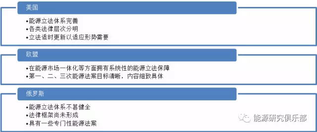 美歐俄能源立法特點(diǎn)