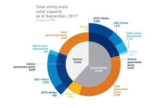 中國儲能網(wǎng)訊:根據(jù)《印度太陽能產(chǎn)業(yè)地圖報(bào)告》,截至2017年9月,印度公共事業(yè)規(guī)模太陽能裝機(jī)總量達(dá)到16.2 GW;過去四個季度印度市場增長尤其迅速-裝機(jī)量為7.5GW,較同期增長84%,期間向開發(fā)商分配出10GW太陽能項(xiàng)目。