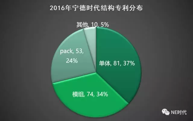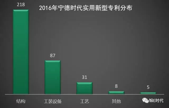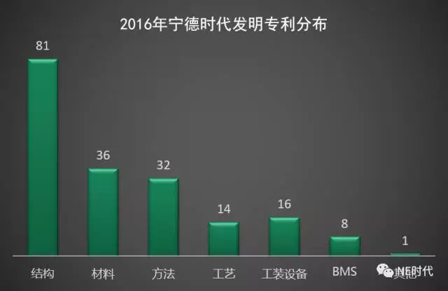 寧德時代2016年申請的實用新型專利主要集中在結(jié)構(gòu)和工裝設(shè)備方面,其中結(jié)構(gòu)專利占62%。