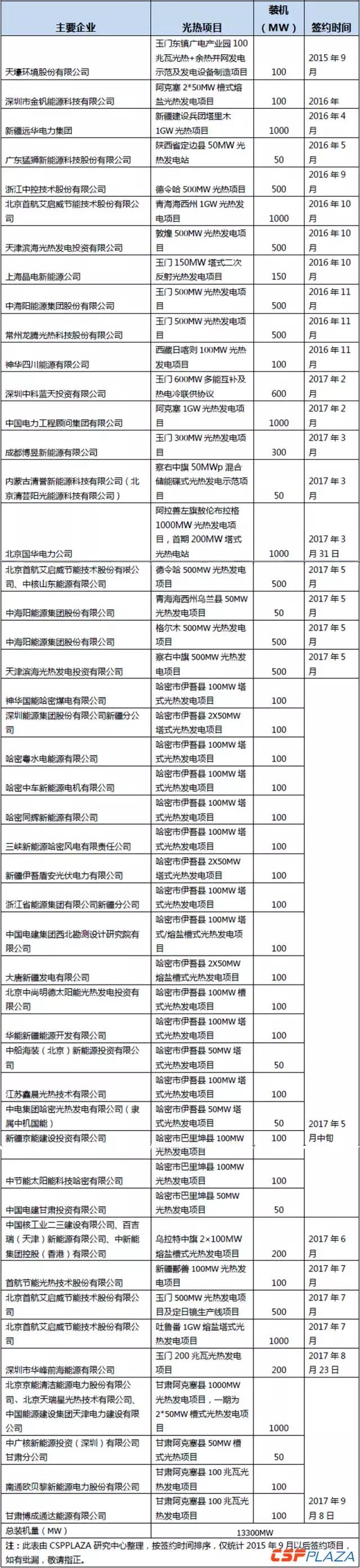 CSPPLAZA日前對各企業(yè)已公開的光熱項目規(guī)劃進行了匯總,據(jù)初步統(tǒng)計,自2015年9月份以來,相關企業(yè)與各地方政府所簽署的光熱發(fā)電項目總裝機高達13300MW,共涉及6個省份或自治區(qū),所涉及到的大部分項目預計都將參與第二批光熱示范項目的申報,部分項目目前正在開展前期工作。