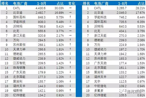 下面再補(bǔ)充介紹一些關(guān)于9月份電池裝機(jī)的其他一些情況: