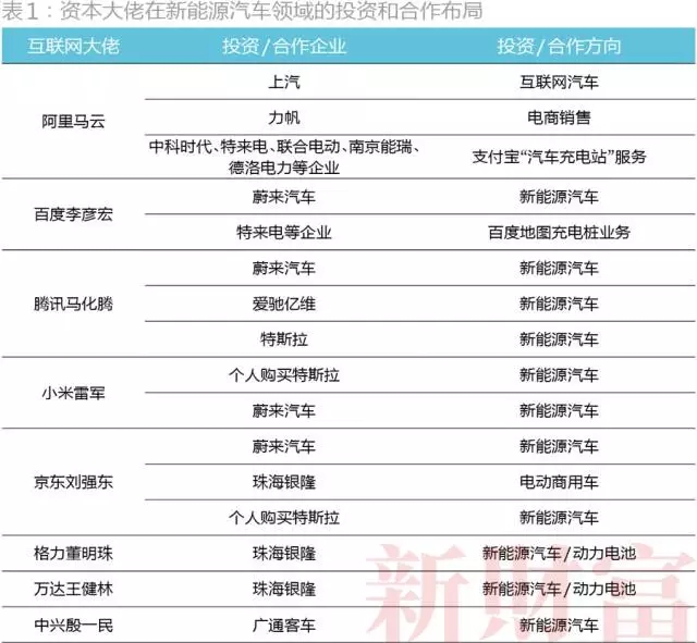 在政策的大力扶持下,2017年一季度北汽的新能源汽車超過了比亞迪、吉利,于4月占據(jù)了全球新能源汽車單月銷量榜首。與此同時,電動車創(chuàng)業(yè)公司也已超過200家,除了“風(fēng)口”上的樂視超級汽車,還包括了蔚來汽車、小鵬汽車、奇點(diǎn)汽車等。據(jù)不完全統(tǒng)計,至少已有20億美元投資進(jìn)入國內(nèi)新能源汽車領(lǐng)域,布局產(chǎn)業(yè)鏈的各個環(huán)節(jié)(表1)。