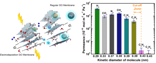 電沉積氧化石墨烯膜尺寸篩分示意圖和氣體滲透性能