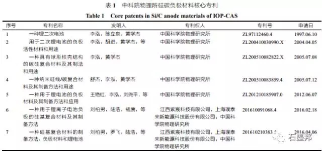 目前,該中試線已經(jīng)可以提供不同類型與規(guī)格的納米硅碳負極材料,并且有很多新型工藝以及當(dāng)前工藝的改進路線正在積極研發(fā)和試驗中。同時,該中試線的規(guī)模也在不斷擴大,預(yù)計到2017年底將實現(xiàn)不同種類的納米硅碳負極材料噸級至百噸級生產(chǎn)。另外,項目組擁有多項納米硅碳負極材料在國內(nèi)的早期核心專利,具有一定的競爭優(yōu)勢(表1)。