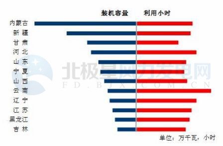 圖6 1-9月份風(fēng)電裝機(jī)較多省份風(fēng)電裝機(jī)容量和設(shè)備利用小時(shí)