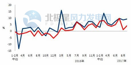 1-9月份,全國6000千瓦及以上風(fēng)電廠發(fā)電量2128億千瓦時(shí),同比增長25.7%,增速比上年同期回落1.1個(gè)百分點(diǎn)。