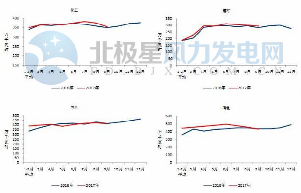 圖4 2016、2017年重點(diǎn)行業(yè)分月用電量情況