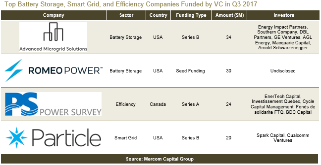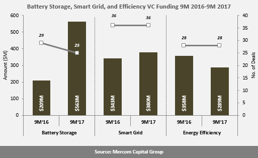 中國儲能網(wǎng)訊:Mercom資本發(fā)布第三季度報(bào)告稱,2017年1-9月,全球智能電網(wǎng)、電池儲能和能效企業(yè)獲得風(fēng)投資金12億美元,同比增長32%。