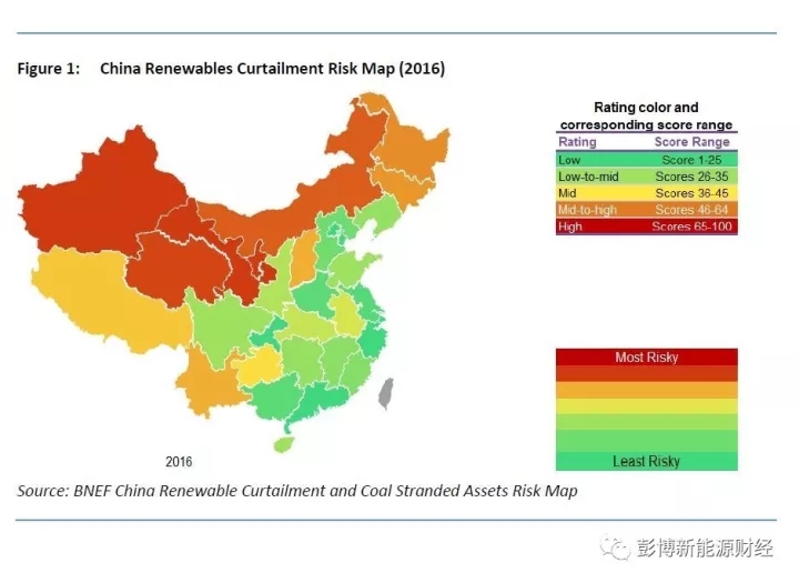 5. 中國仍將在棄風棄光高風險地區(qū)新增超過50GW的風電光伏裝機容量:根據我們的棄風棄光風險地圖,超過三分之一的省份在棄電高風險區(qū)域。然而,我們估計在能源局十三五期間的預核準項目清單中仍有30GW的風能項目及24GW 的光伏項目位于這些高風險地區(qū)。