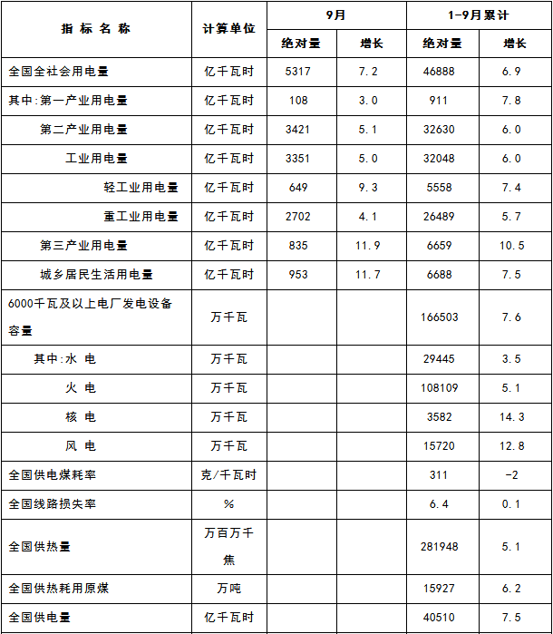 中國儲能網(wǎng)訊:10月23日,國家能源局發(fā)布1-9月份全國電力工業(yè)統(tǒng)計數(shù)據(jù),具體情況如下: