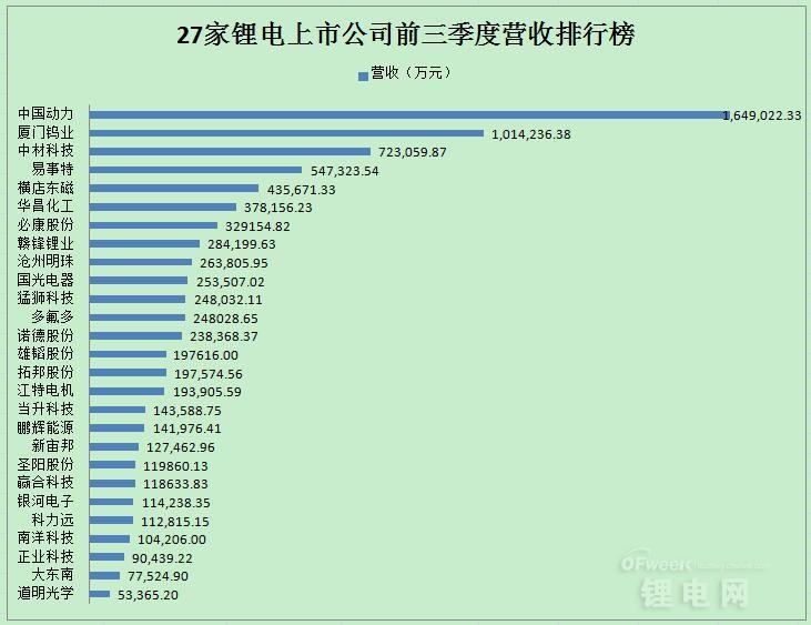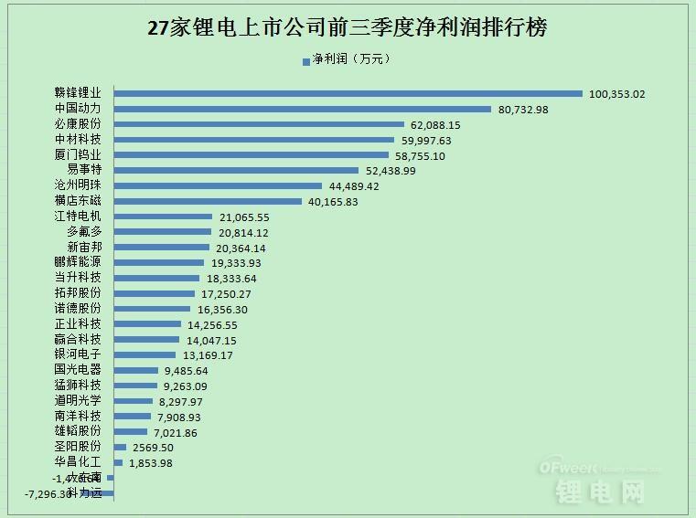 下面是OFweek鋰電網(wǎng)根據(jù)27家鋰電上市公司的業(yè)績進行簡單的排名。