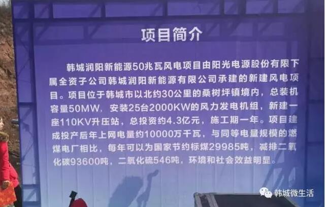 據(jù)韓城市能源局有關(guān)負(fù)責(zé)人介紹,該項目為韓城風(fēng)電一期項目,項目達產(chǎn)達效后,不僅填補了渭北風(fēng)能建設(shè)的空白,優(yōu)化韓城能源結(jié)構(gòu),還將利用秦晉大峽谷風(fēng)能具有良好的示范帶動作用,開創(chuàng)了韓城市風(fēng)力資源開發(fā)和利用的新紀(jì)元。
