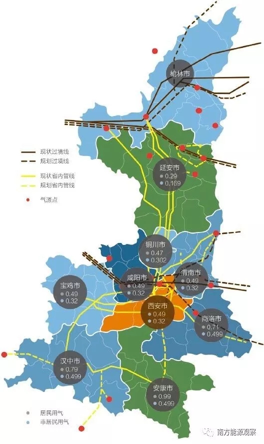 陜西省天然氣公司對(duì)省內(nèi)管道的獨(dú)家建設(shè)運(yùn)營權(quán),主要依據(jù)2008年陜西省發(fā)改委發(fā)布的《關(guān)于在天然氣長輸管道沿線開口接氣有關(guān)問題的通知》。該文件明確“在國家級(jí)天然氣長輸管道沿線開口接氣,由省天然氣公司統(tǒng)一建站和管理;在省屬天然氣長輸管道沿線開口接氣,由各縣區(qū)與省天然氣公司協(xié)商有關(guān)接氣的具體事宜”。