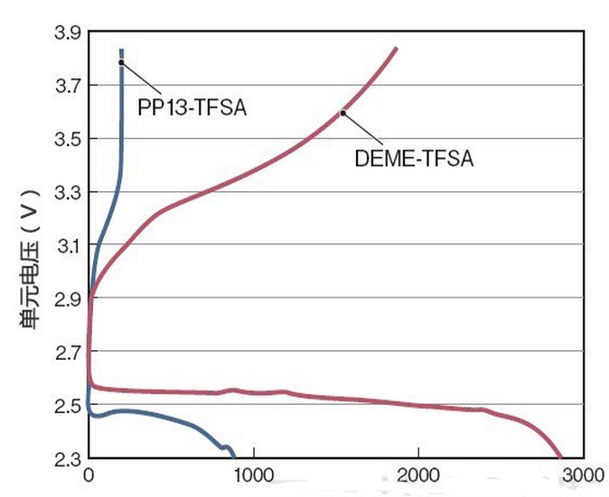 豐田通過在鋰空氣電池的電解液溶劑中采用乙醚類離子液體DEME-TFSA,實現(xiàn)了與有機溶劑相當?shù)娜萘俊?/div>