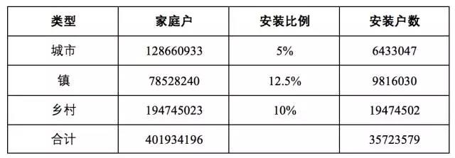 綜上所述,各種類型的安裝戶數(shù)如下表所示。