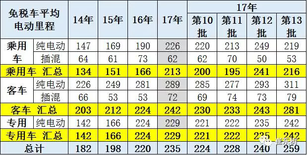 新能源車的續(xù)航里程總體持續(xù)增長,客車尤其明顯。第10批總體平均是285公里,11批是277公里,12批是293公里,13批是311公里。由于客車多且插混和純電動車的結(jié)構(gòu)影響而有所波動。