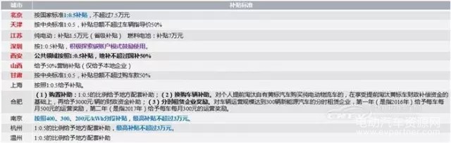 新能源專用車地方政策情況