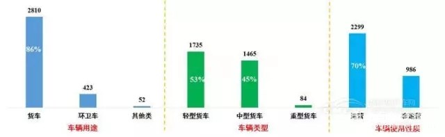 (1)銷量數(shù)據(jù):2017年1-6月,新能源專用車銷量3258輛,貨車占比86%,以中輕型為主,運營車輛占比70%。
