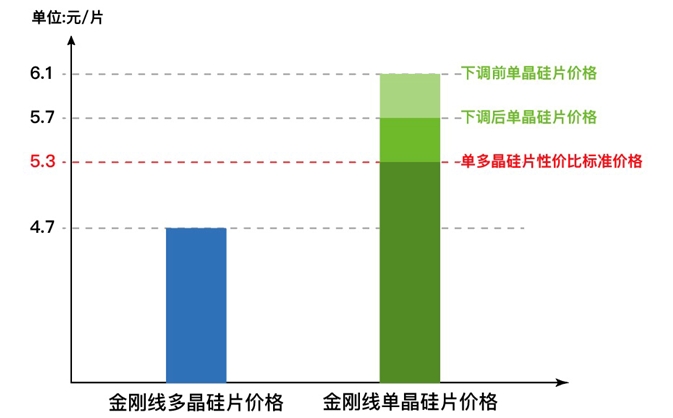 隨著多晶金剛線切割改造放量,多晶硅片也有降價(jià)空間,或逼迫單晶為搶市場同步再降。分析人士稱,此次降價(jià)或許只是開始,到年底12月份,單晶硅片很有可能出現(xiàn)5.4、5.0,甚至4.5元/片以下的價(jià)位。