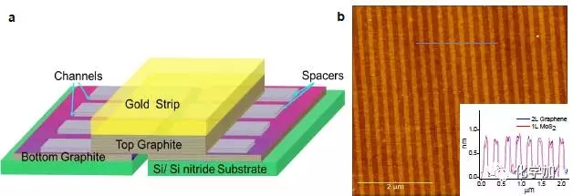 離子通道器件設(shè)計示意圖和原子力顯微鏡圖