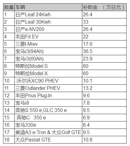 表2 日本在售新能源汽車補(bǔ)助資金一覽