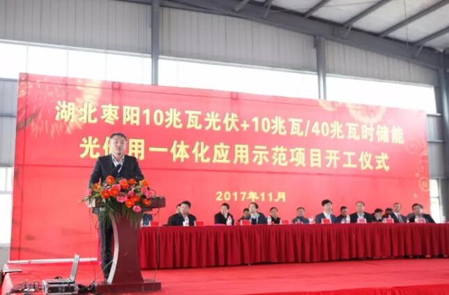 儀式由棗陽市委書記何飛主持,市長孟艷清致辭,北京普能公司總裁黃綿延做關(guān)于儲(chǔ)能技術(shù)及產(chǎn)業(yè)發(fā)展的主題演講;北京能高自動(dòng)化技術(shù)股份有限公司總經(jīng)理金成日做了關(guān)于湖北棗陽10兆瓦光儲(chǔ)用一體化示范項(xiàng)目整體情況報(bào)告。