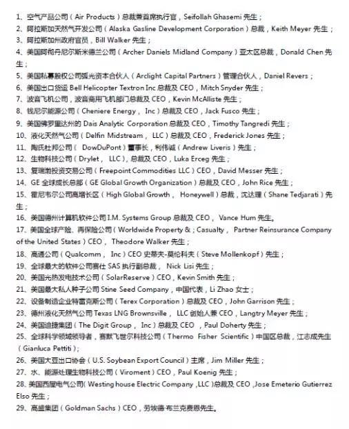 美國貿(mào)易代表團企業(yè)人員名單 能源產(chǎn)業(yè)占主導