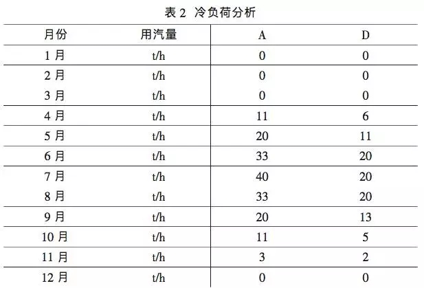 本工程冷負荷優(yōu)先利用熱網(wǎng)加熱器換熱后的冷凝水進行制冷,提供空調用冷凍水,其余不足部分采用蒸汽雙效型溴化鋰機組進行補充。各用戶冷負荷折算后各月的用汽量如表 2。