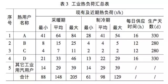 綜上,經分析折算,匯總園區(qū)工業(yè)熱負荷(折算到汽機抽汽口),詳見表 3。