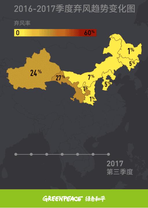 官方統(tǒng)計(jì)數(shù)據(jù)顯示,包括內(nèi)蒙古、黑龍江、吉林和遼寧等省份在內(nèi),2016年一季度到2017年三季度,全國(guó)多數(shù)省區(qū)棄風(fēng)率呈大幅下降趨勢(shì),內(nèi)蒙古、黑龍江、吉林和遼寧等省區(qū)降幅最為顯著。