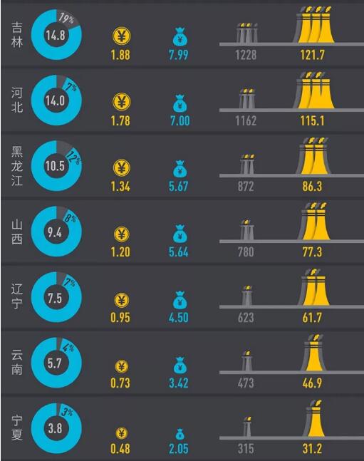 然而,下圖的趨勢(shì)同時(shí)顯示出,幾乎所有顏色由深至淺轉(zhuǎn)換明顯——即棄風(fēng)率顯著降低的省區(qū),去年第三季度棄風(fēng)率同樣較低,卻都在去年第四季度和今年第一季度出現(xiàn)棄風(fēng)率大幅反彈的現(xiàn)象。出現(xiàn)這種現(xiàn)象的原因是供暖季的“熱電聯(lián)產(chǎn)”使得煤電進(jìn)一步擠壓了風(fēng)電的發(fā)電空間。
