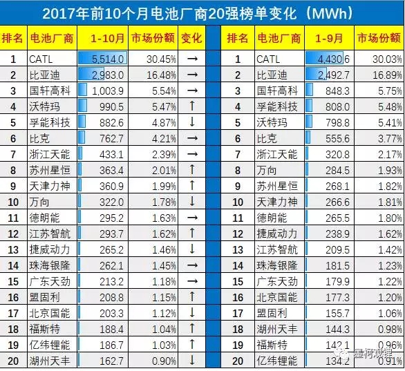 3、電池廠商10月份裝機(jī)20強(qiáng)統(tǒng)計(jì)