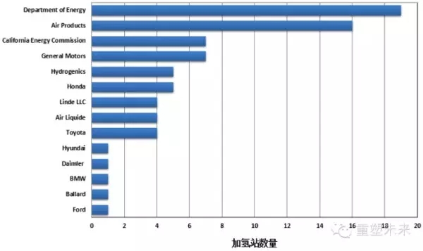 各公司參與美國(guó)加氫站數(shù)量排行表