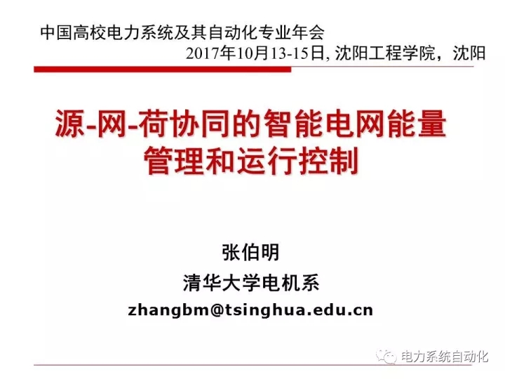 中國(guó)儲(chǔ)能網(wǎng)訊:中國(guó)高等學(xué)校電力系統(tǒng)及其自動(dòng)化專業(yè)第33屆學(xué)術(shù)年會(huì)日前在沈陽(yáng)召開(kāi),清華大學(xué)張伯明教授在會(huì)上作了題為“源—網(wǎng)—荷協(xié)同的智能電網(wǎng)能量管理和運(yùn)行控制”的主旨報(bào)告。小編征得專家同意,在此分享報(bào)告PPT,歡迎品讀。