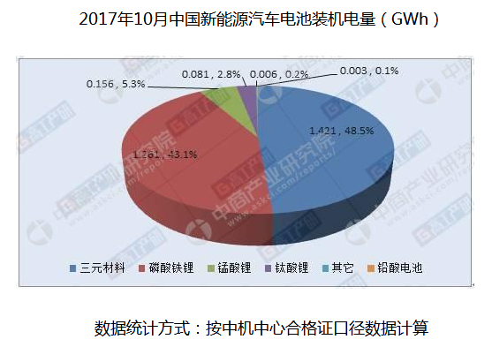 據(jù)GGII統(tǒng)計(jì)數(shù)據(jù)顯示,2017年10月動(dòng)力電池裝機(jī)總電量約2.93GWh,同比增長(zhǎng)52%,環(huán)比下降15%。